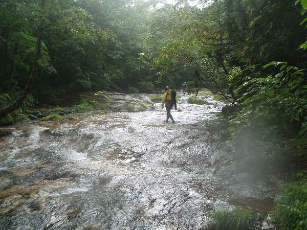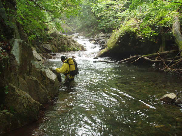 光っていた。我々はあっさりと断念して左岸より林道に上がる。林道はすぐ上に通っ