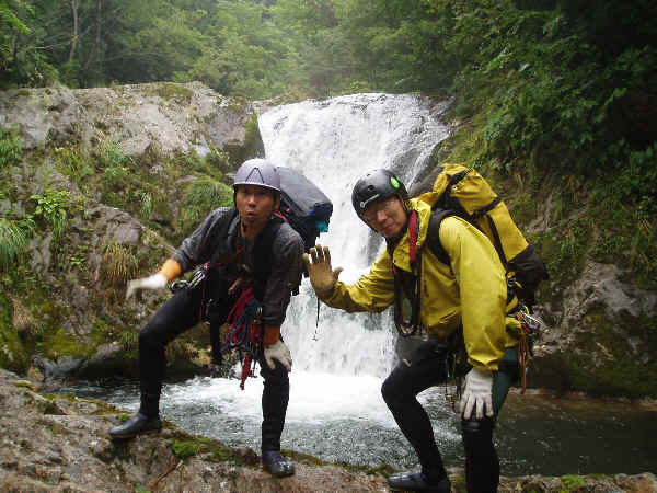 で威圧感は無い。2-3mのチョックストーン滝が続き、よ〜く考えれば全て直登でき