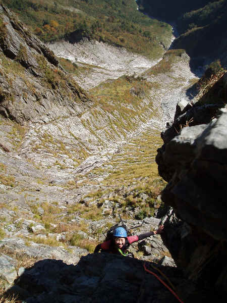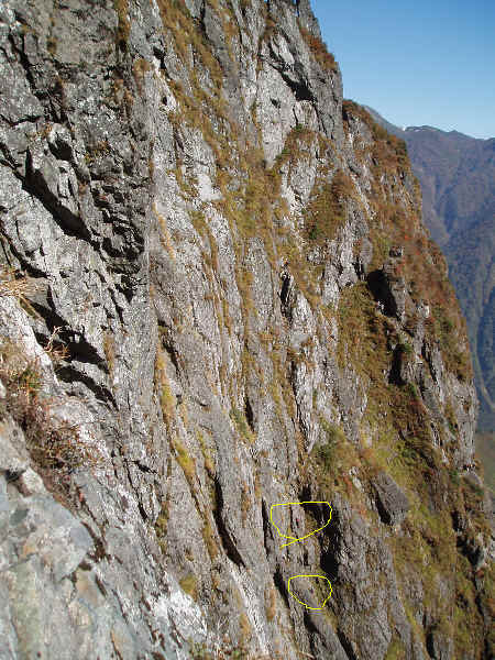 南稜テラスちかくより、凹状岩壁。