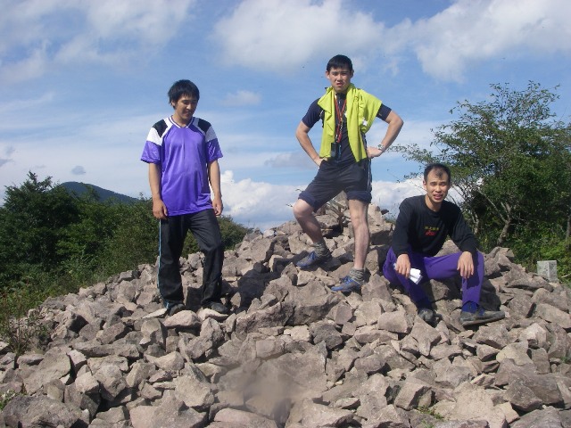 が、もろくて悪そう(一瞬、落ちそうになっていた)…。あぶねー、「ヘル中の精神」を見習えよ!後続は、もちろん、ヘルメットを被り、さらに上からロープを投げてもらい、安全登山で越えた。