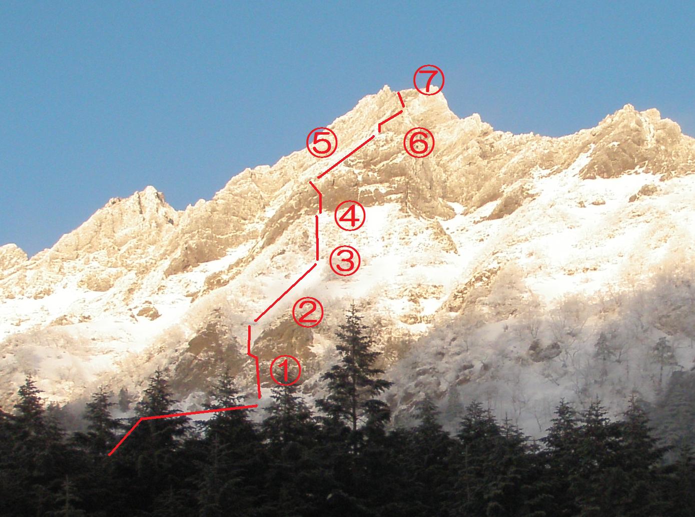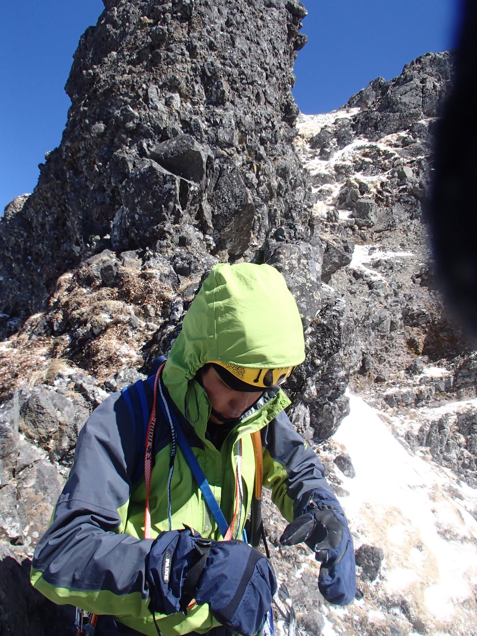 中山尾根第一岩壁は正規ルートから外れたルンゼを登ったので残置が無く、核心と言われる第二岩壁以上に恐かったです。