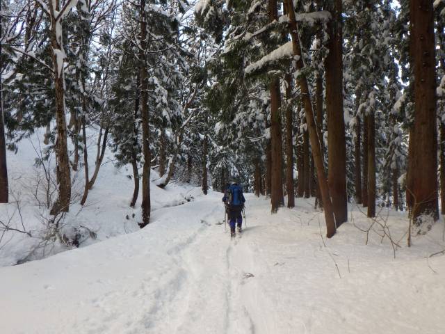 スキー班は、途中の標高1,480m辺りで間違えて支尾根へ入り込んでしまい、延々ラッセルとトラバースを経て尾根へ登り返し復帰するまでに時間を要してしまった。